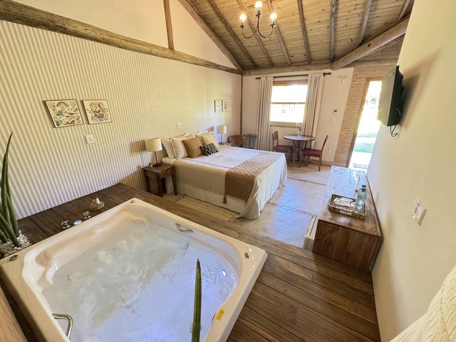 Wifi Smart TV Frigobar Cofre Ar Condicionado Secador de Cabelo Cama Box King Size Amenities Enxoval 300 Fios Varanda Banheira de Hidromassagem Máquina de Café Chaleira Aquecedor Aquecedor Elétrico LareiraCasa do Campo