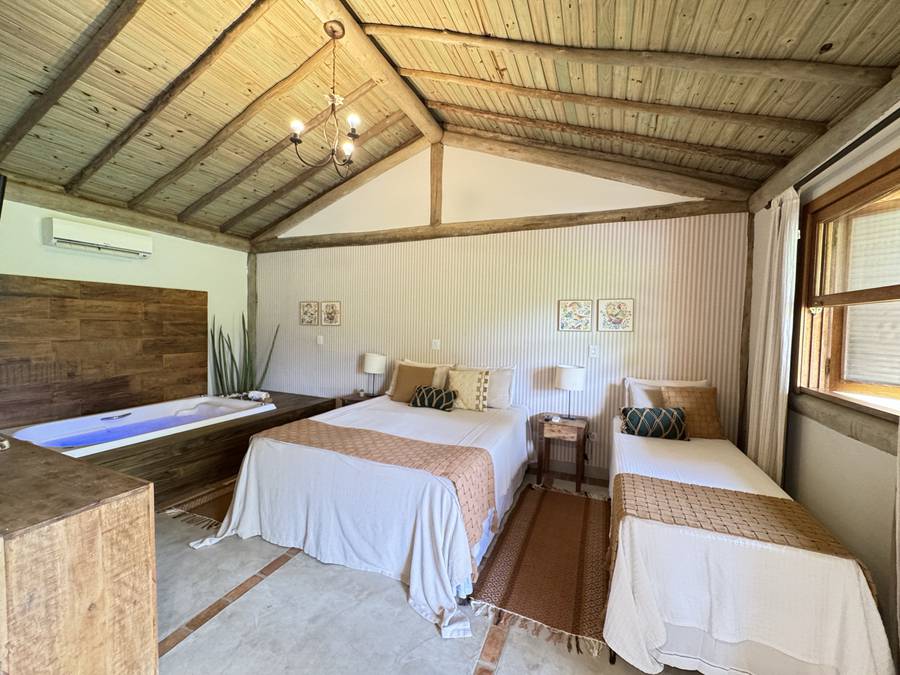 Wifi Smart TV Frigobar Cofre Ar Condicionado Secador de Cabelo Cama Queen-Size Cama Solteiro Banheira de Hidromassagem DuchaCabana Dupla