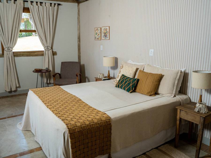 A Casa do Campo é única, com diversos ambientes integrados e garagem privativa. Possui 80m2 e varanda com vista para o jardim, com deck com ofurô para banho de imersão, sala de estar com jardim, camarim e closet. Cconta ainda com café categoria especial e chás variados. Amenities L’Occitane au Brésil, Enxoval 300 Fios e Toalhas Trousseau.