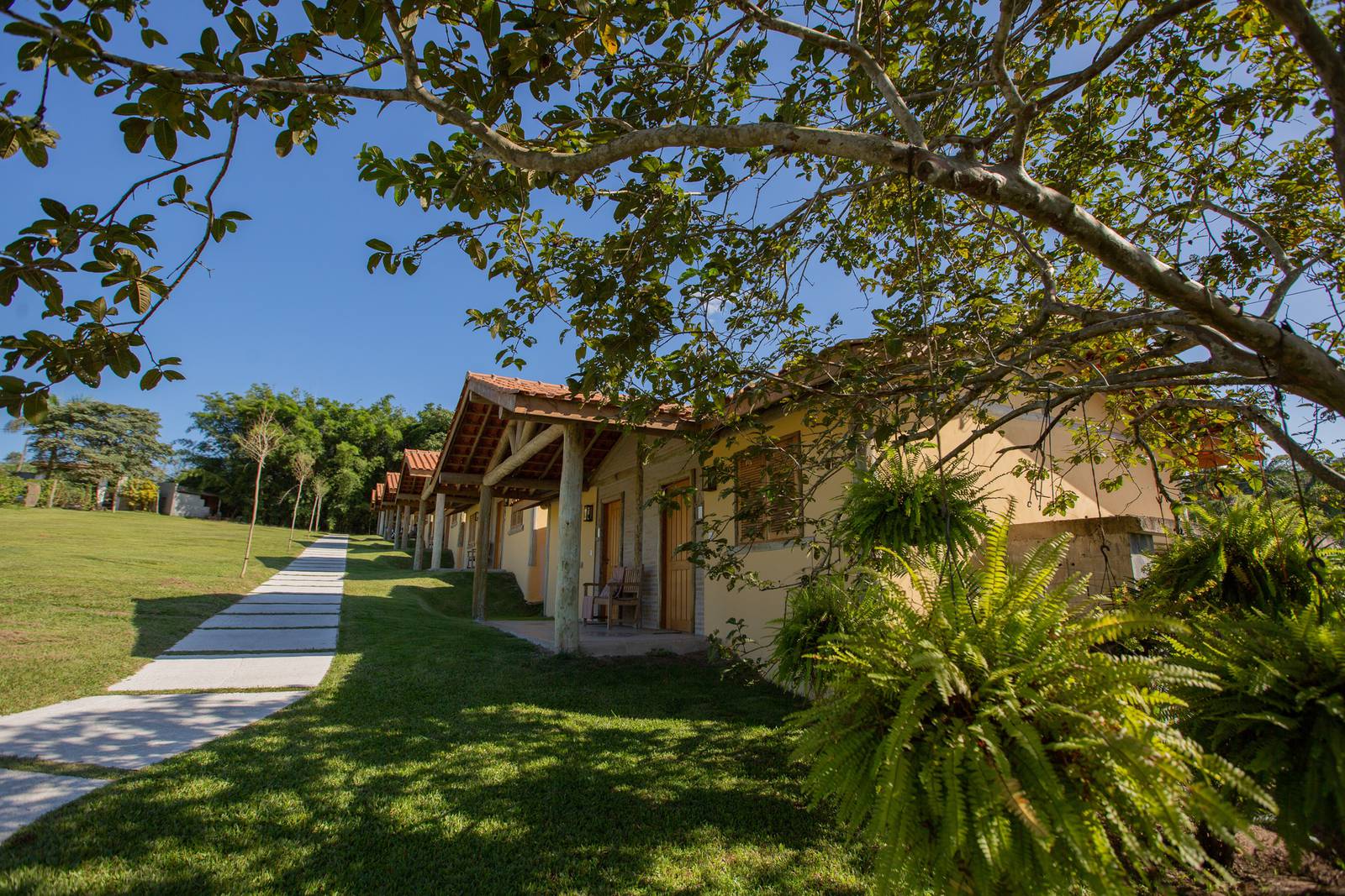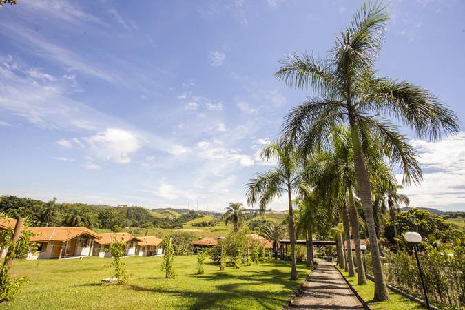 Pensão completa, restaurante Dona Dora, piscina climatizada, redário, lago, salão de jogos, estacionamento interno e atendimento com acolhimento.